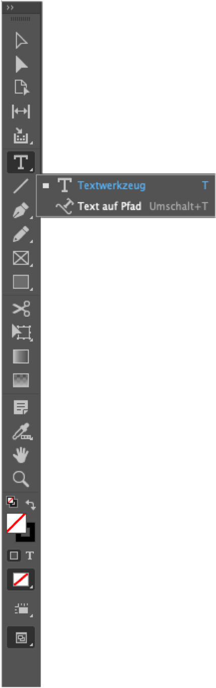 Am linken Bildschirmrand befindet sich die Werkzeugleiste. Diese kann zweispaltig angezeigt werden, wenn man den Doppelpfeil oben links im grauen Rand der Werkzeugleiste einmal anklickt. An diesem grauen Rand lässt sich die Werkzeugleiste auch verschieben und nach Belieben auf dem Bildschirm platzieren.